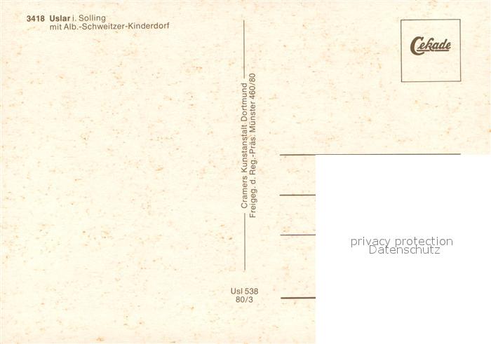 73685082 Uslar Solling mit Albert Schweitzer Kinderdorf Fliegeraufnahme postalisch nicht gelaufen Erhaltung siehe scans [FriedD77] KatCode: 11110003155012