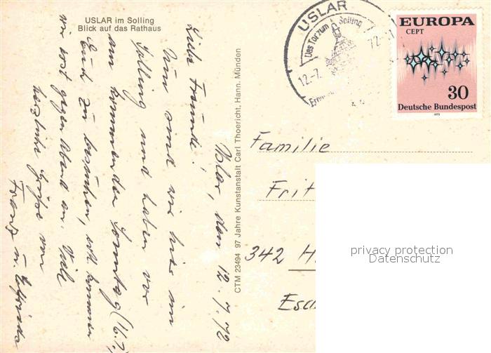 72787151 alte Postkarte Uslar Solling Rathaus postalisch gelaufen Erhaltung siehe scans [AndreD76] KatCode: 11110003155012
