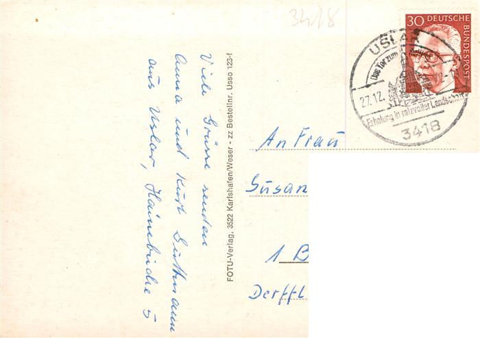 73937519 alte Postkarte Uslar Solling Rathaus Fliegeraufnahmen Fachwerkhaeuser postalisch gelaufen Erhaltung siehe scans [WerneD78] KatCode: 11110003155012