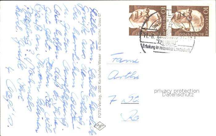 72291886 alte Postkarte Uslar Solling Rathaus Kirche Luftaufnahme Hotel Menzhausen Fachwerkhaus Forstgarten postalisch gelaufen Erhaltung siehe scans KatCode: 11110003155012
