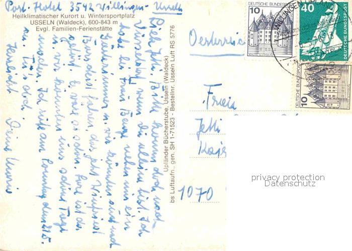 72838429 alte Postkarte Usseln Ev Familien Ferienstaette Fliegeraufnahme postalisch gelaufen Erhaltung siehe scans [WerneD78] KatCode: 11110006635022