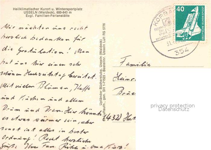 72793589 alte Postkarte Usseln Ev Familien Ferienstaette Fliegeraufnahme postalisch gelaufen Erhaltung siehe scans [FriedD77] KatCode: 11110006635022