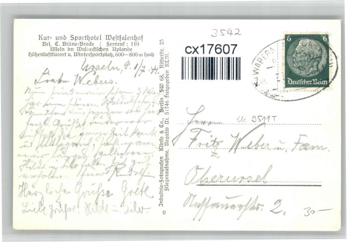 30725344 alte Postkarte Usseln Fliegeraufnahme Hotel Westfalenhof postalisch gelaufen KatCode: 11110006635022