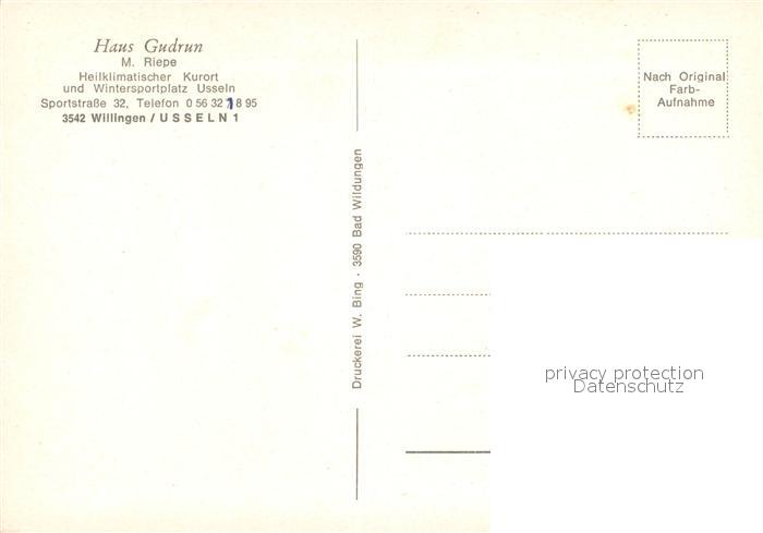73731340 Usseln Gaestehaus Pension Haus Gudrun postalisch nicht gelaufen Erhaltung siehe scans [FriedD77] KatCode: 11110006635022