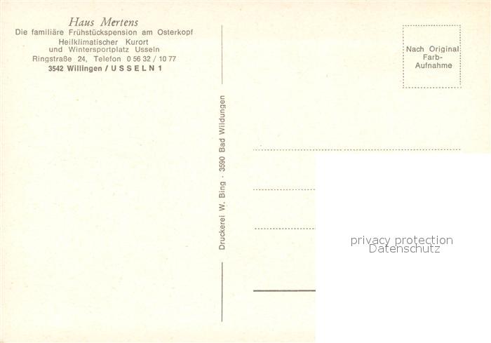73731341 Usseln Gaestehaus Pension Haus Mertens am Osterkopf postalisch nicht gelaufen Erhaltung siehe scans [FriedD77] KatCode: 11110006635022