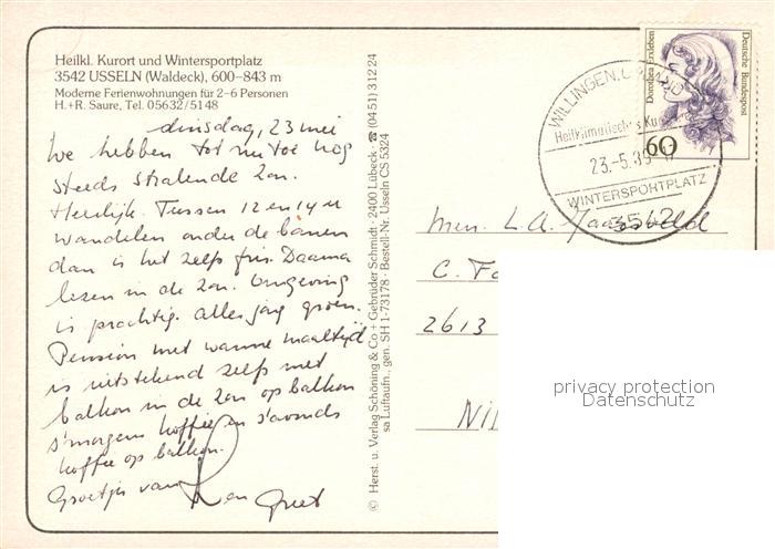 73170568 alte Postkarte Usseln Heilklimatischer Kurort Wintersportplatz Fliegeraufnahme postalisch gelaufen Erhaltung siehe scans [FriedD77] KatCode: 11110006635022