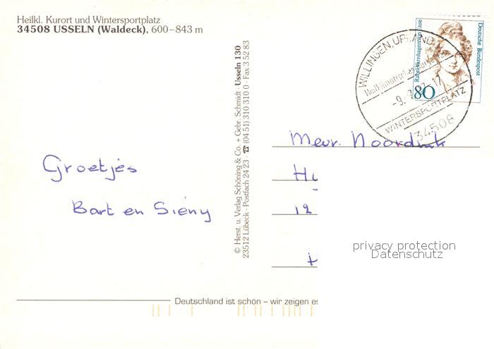73311828 alte Postkarte Usseln Panorama Fachwerkhaus Kirche See Park postalisch gelaufen Erhaltung siehe scans [KathaD81] KatCode: 11110006635022