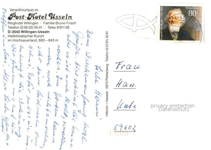 73333499 alte Postkarte Usseln Post Hotel Usseln postalisch gelaufen Erhaltung siehe scans [LiesaD40] KatCode: 11110006635022