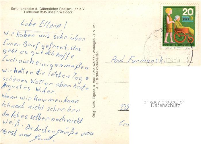 73167116 alte Postkarte Usseln Schullandheim der Guetersloher Realschulen postalisch gelaufen Erhaltung siehe scans [WerneD78] KatCode: 11110006635022