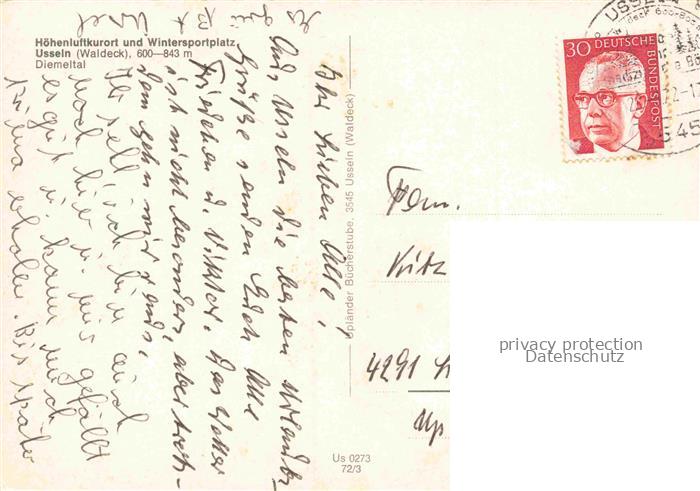 74154670 alte Postkarte Usseln Willingen Waldeck-Frankenberg Hessen Diemeltal postalisch gelaufen Erhaltung siehe scans [WerneD78] KatCode: 11110006635022