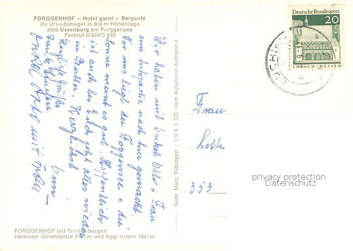 73646419 alte Postkarte Ussenburg Hotel garni Forggenhof Bergcafe Terrasse postalisch gelaufen Erhaltung siehe scans [WerneD78] KatCode: 11110009777166