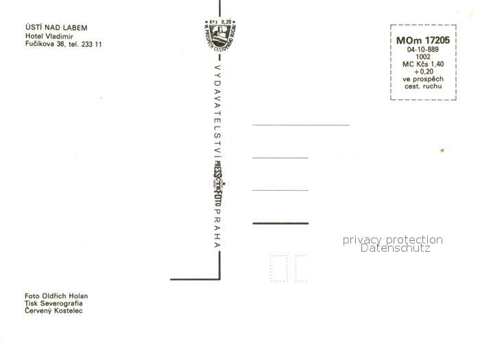 13215592 Usti nad Labem Hotel Vladimir postalisch nicht gelaufen Erhaltung siehe scans [LiesaD40] KatCode: 11520