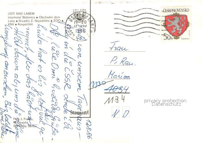 old postcard Usti nad Labem Interhotel Theater Zoo KNV Freibad postalisch gelaufen Erhaltung siehe scans [FriedD77]
