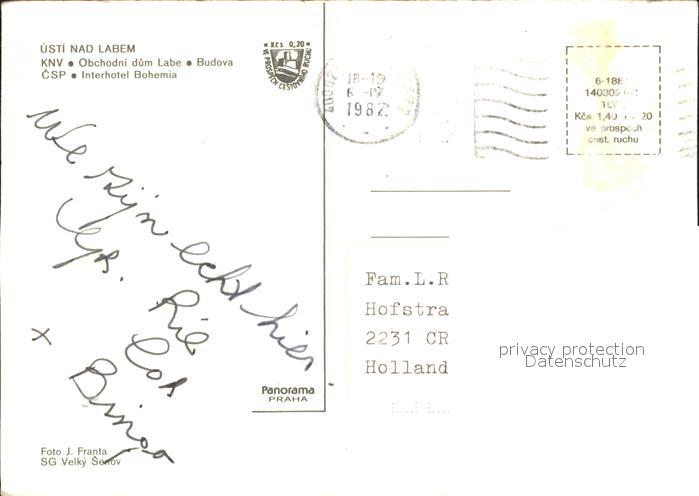 old postcard Usti nad Labem KNV Obchodni dum Labe Budova CSP Interhotel Bohemia postalisch gelaufen Erhaltung siehe scans
