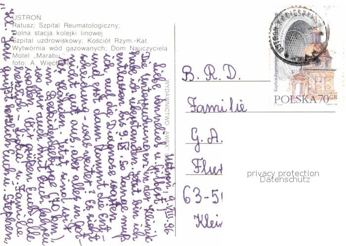 alte Postkarte Ustron Rathaus Spital Dom postalisch gelaufen Erhaltung siehe scans [KathaD79]
