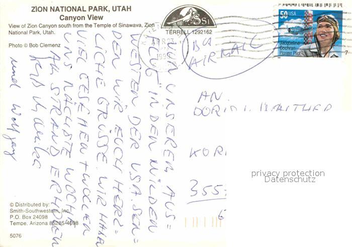 72884007 old postcard Utah US-State Zion National Park Canyon postalisch gelaufen Erhaltung siehe scans [FriedD77] KatCode: 14140470000000