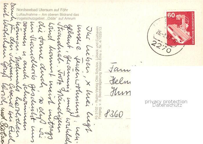 73026453 alte Postkarte Utersum Fliegeraufnahme postalisch gelaufen Erhaltung siehe scans [KathaD81] KatCode: 11110001054143
