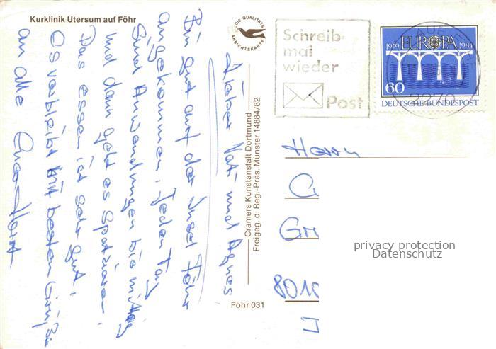 74043724 alte Postkarte Utersum Insel Foehr Kurklinik postalisch gelaufen Fliegeraufnahme Erhaltung siehe scans [FriedD77] KatCode: 11110001054143
