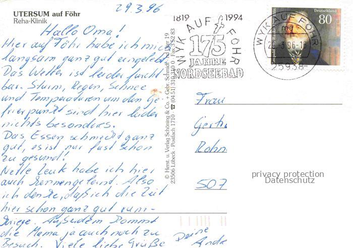 Utersum Insel Foehr Nordfriesland Schleswig-Holstein Reha Klinik Fliegeraufnahme postalisch gelaufen Erhaltung siehe scans [WerneD78] alte Postkarte Wern Katcode 11110001054143