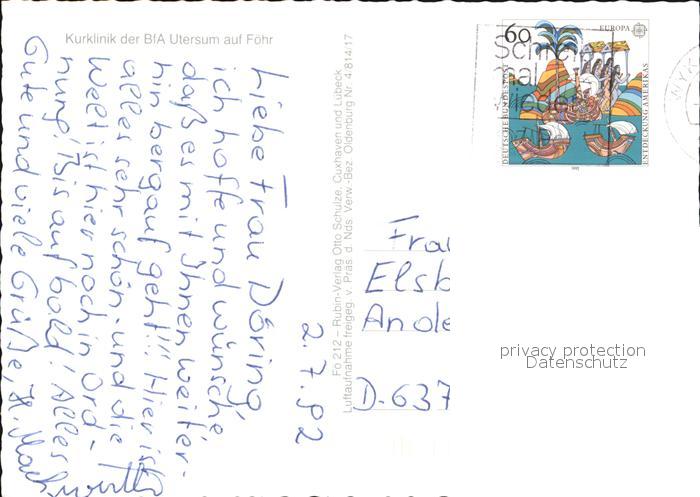 alte Postkarte Utersum Kurklinik der BfA Fliegeraufnahme Huenengrab Hallenschwimmbad postalisch gelaufen Erhaltung siehe scans