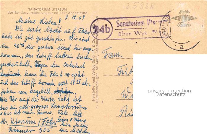 72890358 alte Postkarte Utersum Sanatorium der BfA Fliegeraufnahme postalisch gelaufen Erhaltung siehe scans [FriedD77] KatCode: 11110001054143