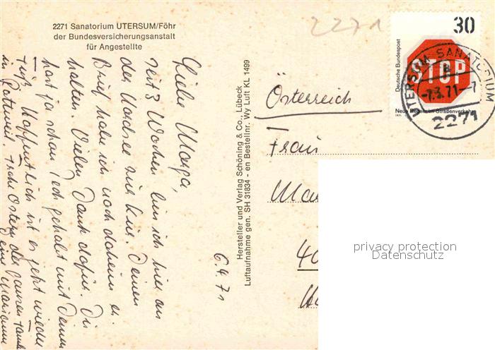 72840526 alte Postkarte Utersum Sanatorium der BfA Fliegeraufnahme postalisch gelaufen Erhaltung siehe scans [FriedD77] KatCode: 11110001054143