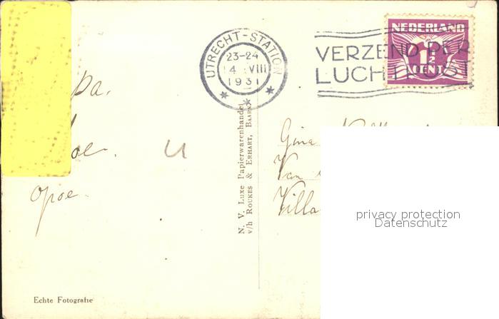 old postcard Utrecht Kloostergang Brunnen postalisch gelaufen Erhaltung siehe scans