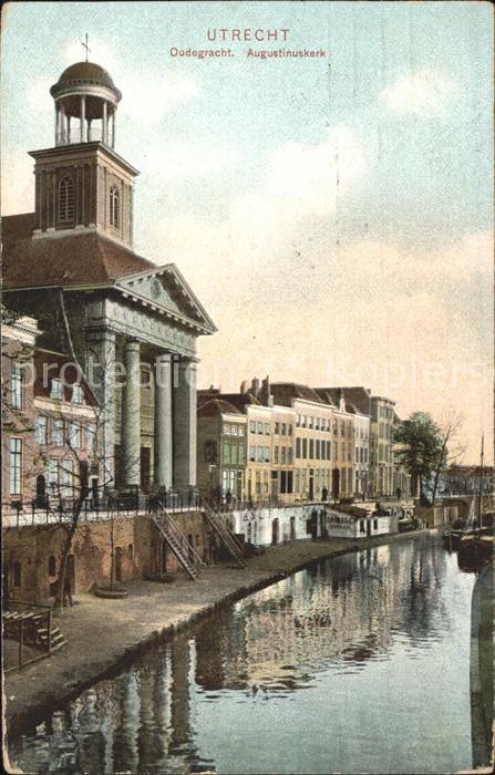 old postcard Utrecht Oudegracht Augustinuskerk Kirche postalisch gelaufen Erhaltung siehe scans