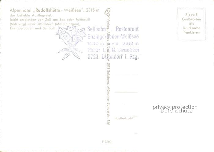 11931817 Uttendorf Salzburg Alpenhotel Rudolfshuette Weisssee postalisch nicht gelaufen Erhaltung siehe scans KatCode: 11390322050624