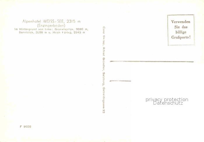 72796265 Uttendorf Salzburg Alpenhotel Weiss-See Granatspitze Sonnblick postalisch nicht gelaufen Erhaltung siehe scans [NatalD47] KatCode: 11390322050624