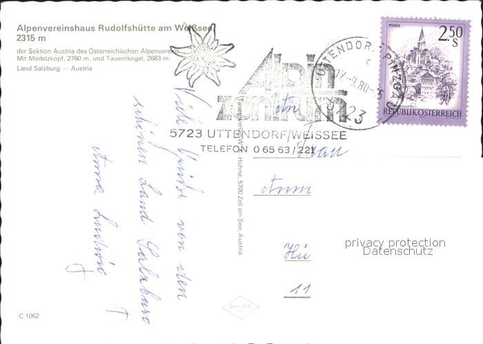 72375024 alte Postkarte Uttendorf Salzburg Alpenvereinshaus Rudolfshuette postalisch gelaufen Erhaltung siehe scans KatCode: 11390322050624