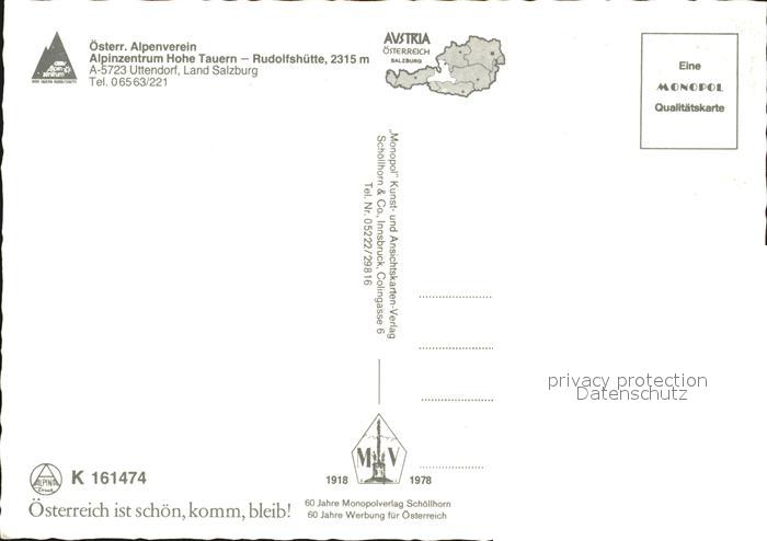 72496683 Uttendorf Salzburg Alpinzentrum Hohe Tauern Rudolfshuette Bergsee Gebirgspanorama postalisch nicht gelaufen Erhaltung siehe scans KatCode: 11390322050624