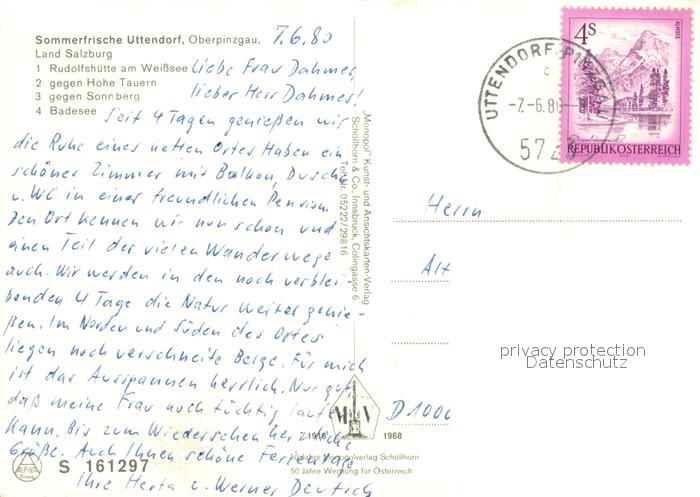 73625875 alte Postkarte Uttendorf Salzburg Rudolfshuette am Weissensee Hohe Tauern Sonnberg Badesee postalisch gelaufen Erhaltung siehe scans [FriedD77] KatCode: 11390322050624