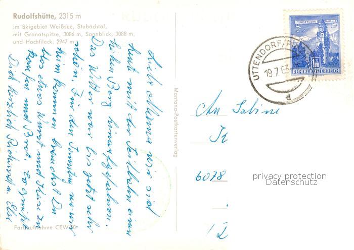 73518923 alte Postkarte Uttendorf Salzburg Rudolfshuette Skigebiet Weisssee Stubachtal postalisch gelaufen Erhaltung siehe scans [FriedD77] KatCode: 11390322050624