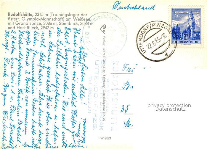 73359255 alte Postkarte Uttendorf Salzburg Rudolfshuette Trainingslager der oesterr. Olympia Mannschaft am Weisssee Hohe Tauern postalisch gelaufen Erhaltung siehe scans [FriedD77] KatCode: 11390322050624