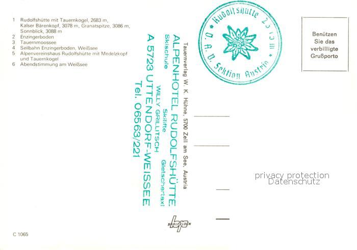 73072914 Uttendorf Salzburg Rudolfshuette Weiss See postalisch nicht gelaufen Erhaltung siehe scans [KathaD81] KatCode: 11390322050624