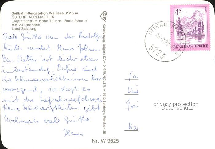 71899903 alte Postkarte Uttendorf Salzburg Seilbahn Bergstation Weisssee Alpinzentrum Hohe Tauern Rudolfshuette postalisch gelaufen Erhaltung siehe scans KatCode: 11390322050624
