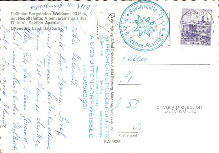 72182673 alte Postkarte Uttendorf Salzburg Tauernkogel Kaiserbaerenkopf Rudolfshuette Weissee postalisch gelaufen Erhaltung siehe scans KatCode: 11390322050624