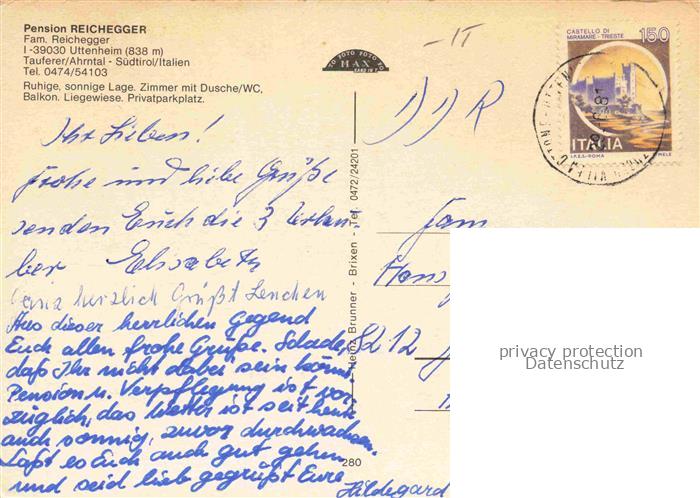 74044778 old postcard Uttenheim Suedtirol IT Pension Reichegger Panorama Gastraum postalisch gelaufen Erhaltung siehe scans [WerneD78] KatCode: 11240
