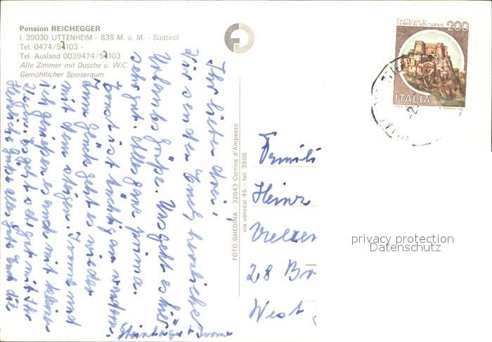 old postcard Uttenheim Suedtirol Pension Reichegger postalisch gelaufen Erhaltung siehe scans