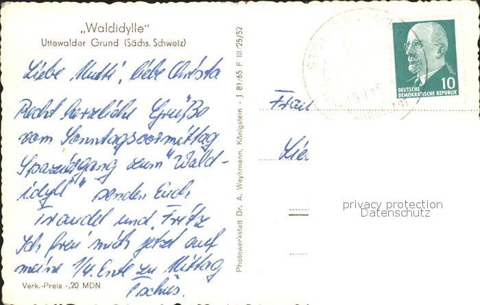 72113529 alte Postkarte Uttewalder Grund Gasthaus Waldidylle postalisch gelaufen Erhaltung siehe scans KatCode: 11110014287380