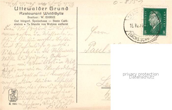 43361236 alte Postkarte Uttewalder Grund Restaurant Waldidylle postalisch gelaufen Erhaltung siehe scans [WerneD78] KatCode: 11110014287380