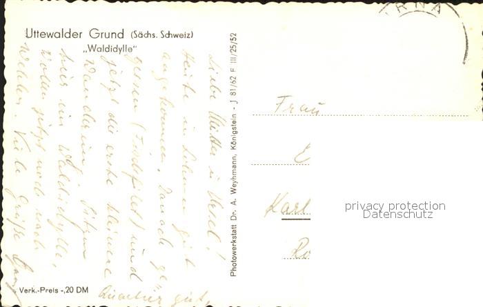 72045480 alte Postkarte Uttewalder Grund Waldidylle postalisch gelaufen Erhaltung siehe scans KatCode: 11110014287380