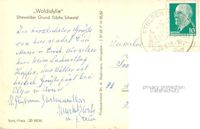 73560247 alte Postkarte Uttewalder Grund Waldidylle postalisch gelaufen Erhaltung siehe scans [KathaD81] KatCode: 11110014287380