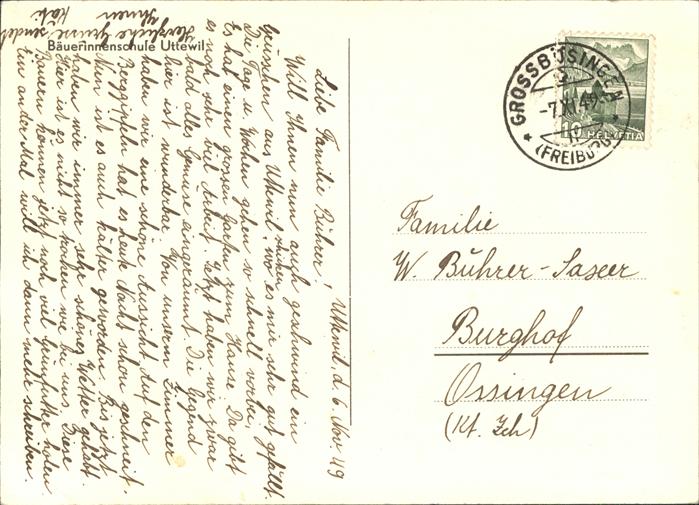 11191405 alte Postkarte Uttewil Baeuerinnenschule postalisch gelaufen KatCode: 11470