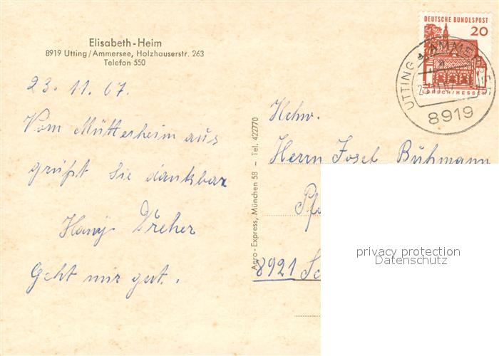73661984 alte Postkarte Utting Ammersee Elisabeth Heim postalisch gelaufen Erhaltung siehe scans [FriedD77] KatCode: 11110009181144