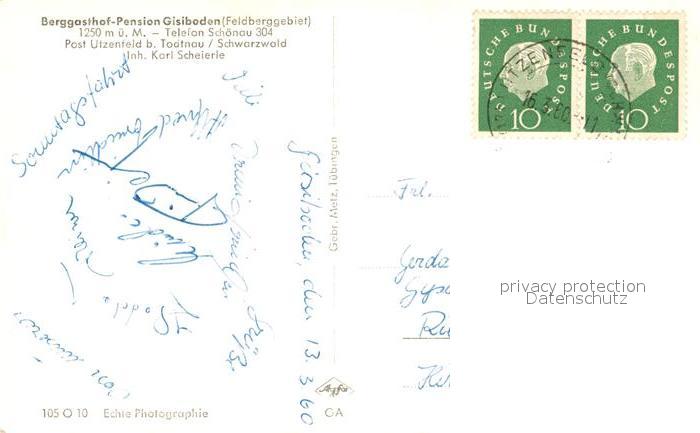 73331423 alte Postkarte Utzenfeld Schwarzwald Berggasthof Pension Gisiboden Feldberggebiet postalisch gelaufen Erhaltung siehe scans [FriedD77] KatCode: 11110008336090