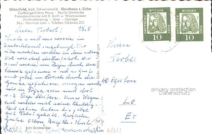 31910374 alte Postkarte Utzenfeld Schwarzwald Gasthaus zur Eiche postalisch gelaufen Erhaltung siehe scans KatCode: 11110008336090