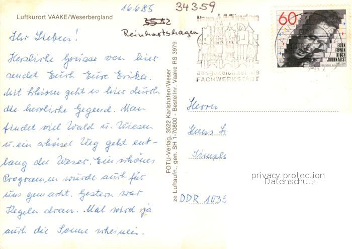 73540144 alte Postkarte Vaake Fliegeraufnahme postalisch gelaufen Erhaltung siehe scans [WerneD78] KatCode: 11110006633022
