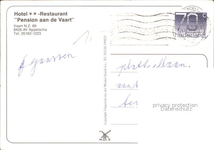 71972690 carte postale Vaart Hotel Restaurant Pension aan de Vaart postalisch gelaufen Erhaltung siehe scans KatCode: 11070011003974